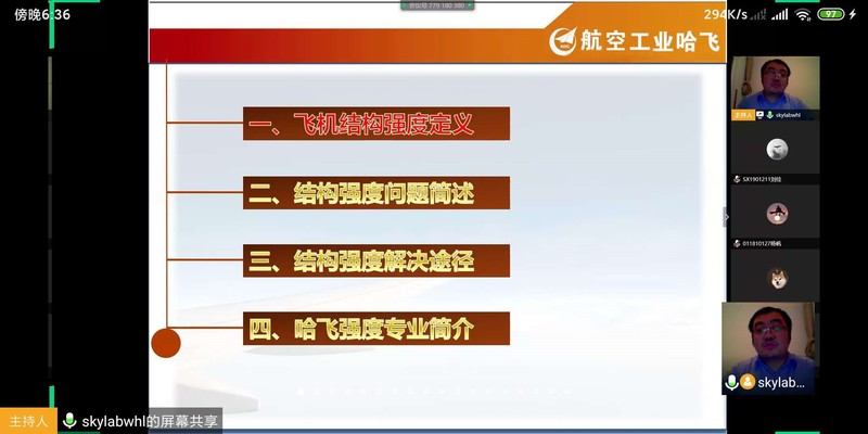 飞机研制是一项系统工程,强度工作则是其重要内容之一,它的总目标是在飞机预期载荷作用下,保证飞机结构和系统的安全。在本次报告中,王虎林高工结合自己多年的工作实践经验,就飞机结构强度方面谈了飞机结构强度定义、飞机结构强度涉及问题和结构强度解决途径,从经验设计、数值仿真、验证试验角度介绍了飞机强度设计。