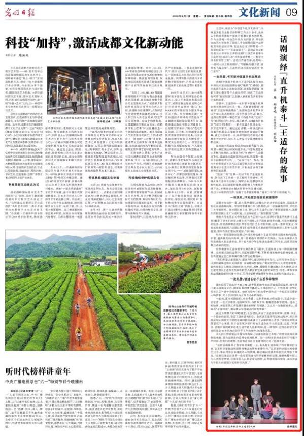 编者按:6月1日,《光明日报》刊发《话剧演绎“直升机泰斗”王适存的故事》一文,展现了公司原创校园精品话剧《中国直升机泰斗王适存》台前幕后的故事,话剧通过讲述王适存航空报国、科学求索、教书育人的故事,用老一辈科学家的故事激励新时代青年员工,用科学家精神鼓舞青年员工在新时代建功立业。现转发全文: