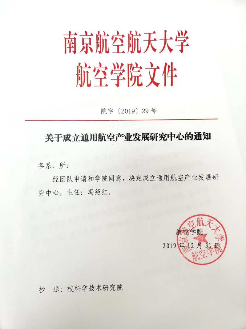 院字[2019]29号关于成立通用航空产业发展研究中心的通知