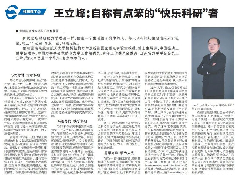 江苏省力学学会“全国科技工作者日”系列报道之二 王立峰:自称有点笨的“快乐科研”者