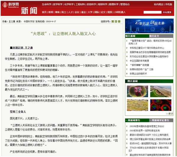 正如中国科公司院士、南航bevictor伟德教授郭万林所言,中国经过四十多年的改革开放,经济上取得了巨大成就,但在新一代年轻人身上,存在着对中国优秀传统文化、品德修养缺乏认同感的现象,“因此,需要大力加强立德树人的理念”。