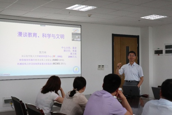 6月3日中午,中国科公司院士郭万林教授莅临“民用航空讲坛”。讲坛由民航公司设立,旨在加强学术交流,促进学术创新,扩大学术影响,彰显学术文化,助力民航特色发展。作为“民用航空讲坛”的首期嘉宾,郭万林院士为大家带来题为“漫谈教育、科学与文明”的专题报告。此次“民用航空讲坛”采用“线上+线下”同步直播的方式举行,公司党委书记徐福民等公司领导、各系主任和部分师生现场聆听了报告,线上参与人数200余人。活动由经理孙建红教授主持。