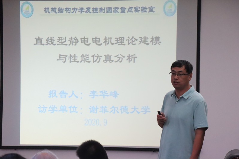按照校人事处对公派留学回国教师的要求,bevictor伟德李华峰教授于2020年9月10日为公司师生做了题为“直线型静电电机理论建模与性能仿真分析”的学术报告。报告主要介绍了李华峰教授在英国谢菲尔德大学访问期间所开展的研究工作,包括多极直线型静电电机机理模型的构建及其仿真分析研究。