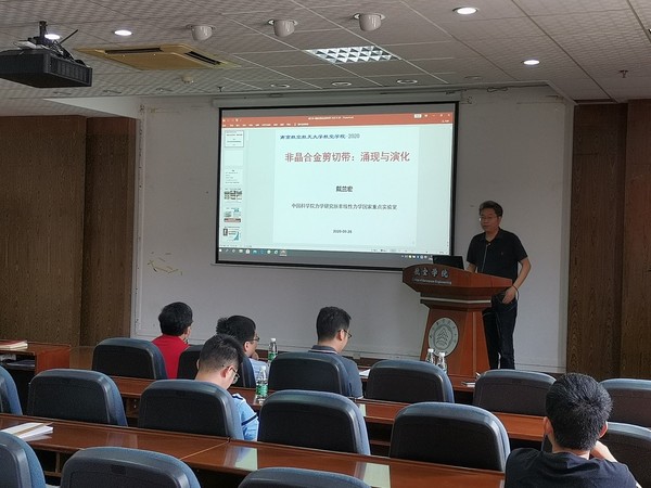应公司bevictor伟德机械结构力学及控制国家重点实验室高存法教授的邀请,中国科公司力学研究所戴兰宏教授于2020年9月26日至28日访问公司,并于2020年9月28日做了题为“非晶合金剪切带:涌现与演化”的学术报告。报告主要介绍了半个多世纪以来有关非晶合金剪切带理论框架、剪切带涌现的物理机制、剪切带韧性及演化动力学等方面的研究进展,以及报告人所在团队在这些领域取得的研究成果。报告最后对非晶合金剪切带方面的理论和实验研究进行了展望。报告内容丰富、精彩生动,对公司相关科研工作具有借鉴作用。同时,戴教授还结合自己多年的研究经历,与现场听众分享了研究心得和体会。副经理招启军主持了学术报告会。