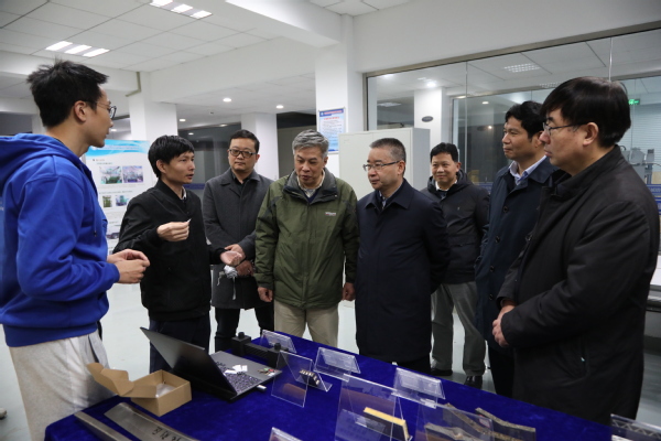 田玉龙一行首先到无人机研究院参观,详细了解了长空系列靶机、鸿雁和飞鹰系列无人机装备研制生产情况。随后又到能源与动力公司、机械结构力学及控制国家重点实验室参观,了解了航空发动机进排气设计、综合热管理、高效能源利用、结构强度、先进控制技术等方面的研究现状及软件系统设计水平,调研了飞行器结构健康监测、超声电机、多功能轻量化材料及二维平面气浮平台的相关研究进展及实际工程应用情况。