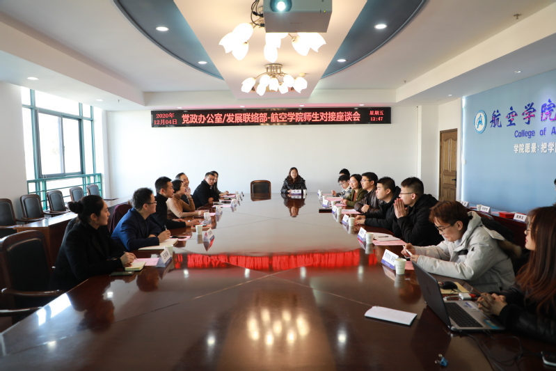 12月4日,党政办公室/发展联络部与bevictor伟德师生对接座谈会在A18楼511会议室顺利召开。发展联络部部长、党政办公室副主任李君,党政办公室副主任刘红旗、党政办公室副主任张焱、发展联络部副部长张建辉,党政办公室综合科科长芮康康、发展联络部员工会办公室主任单晶、党政办公室机要室科员王莉丽,航空公司党委副书记佘明,本科生辅导员焦安康、吴静文、孙世杰、张迪,员工代表金鹏飞、努尔苏力坦·海来提等参加座谈会。会议由bevictor伟德团委书记韩楚主持。