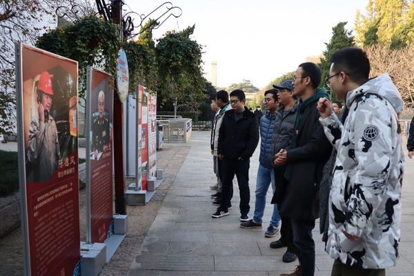 三个支部的师生党员前往雨花台烈士陵园,缅怀在国共十年内战期间在此英勇牺牲的英雄前辈。支部党员们怀着肃穆的心情走在忠魂广场,瞻仰矗立的烈士纪念碑,那一个个镌刻在石碑上的姓名、一幅幅共产党人年轻面庞的照片,再现了那段血与火的峥嵘岁月,再现了雨花英烈们可歌可泣的英勇事迹。