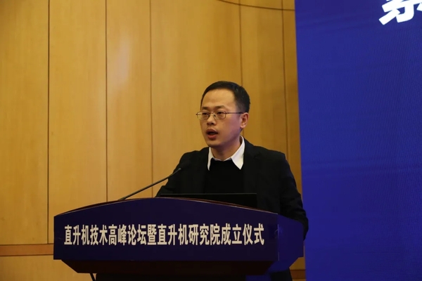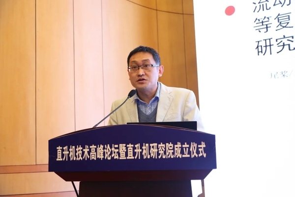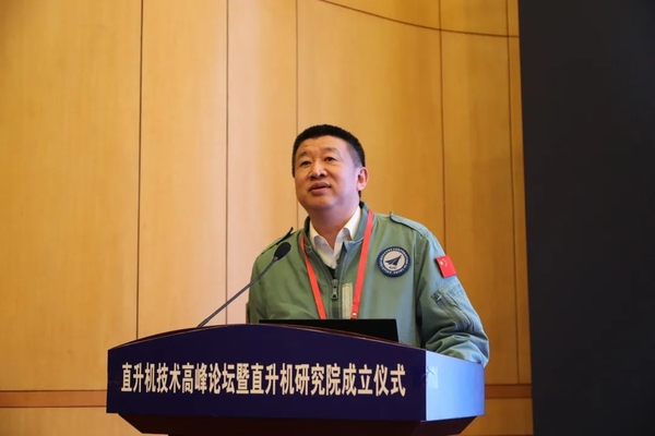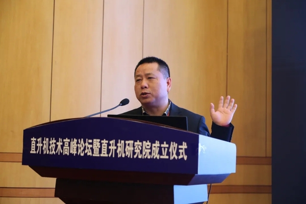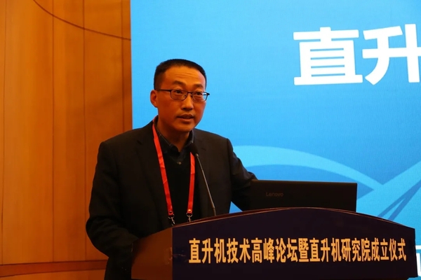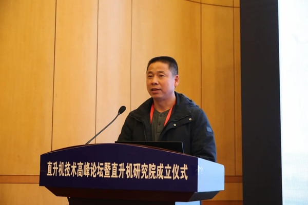 中国直升机设计研究所总设计师邓景辉从成立旋翼研究中心,进行旋翼专项研究角度,做了题为《坚持科技自立自强,持续奋斗直升机新征程》的报告。