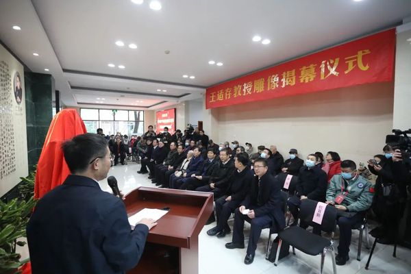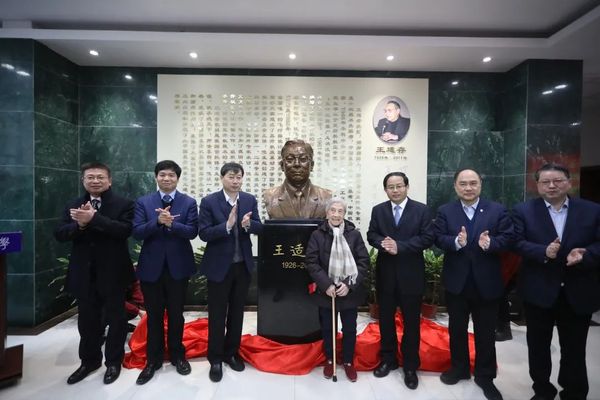 王韫明、罗荣怀、王坚、邱光荣、郑永安、单忠德、吴希明共同为王适存教授雕像揭幕。