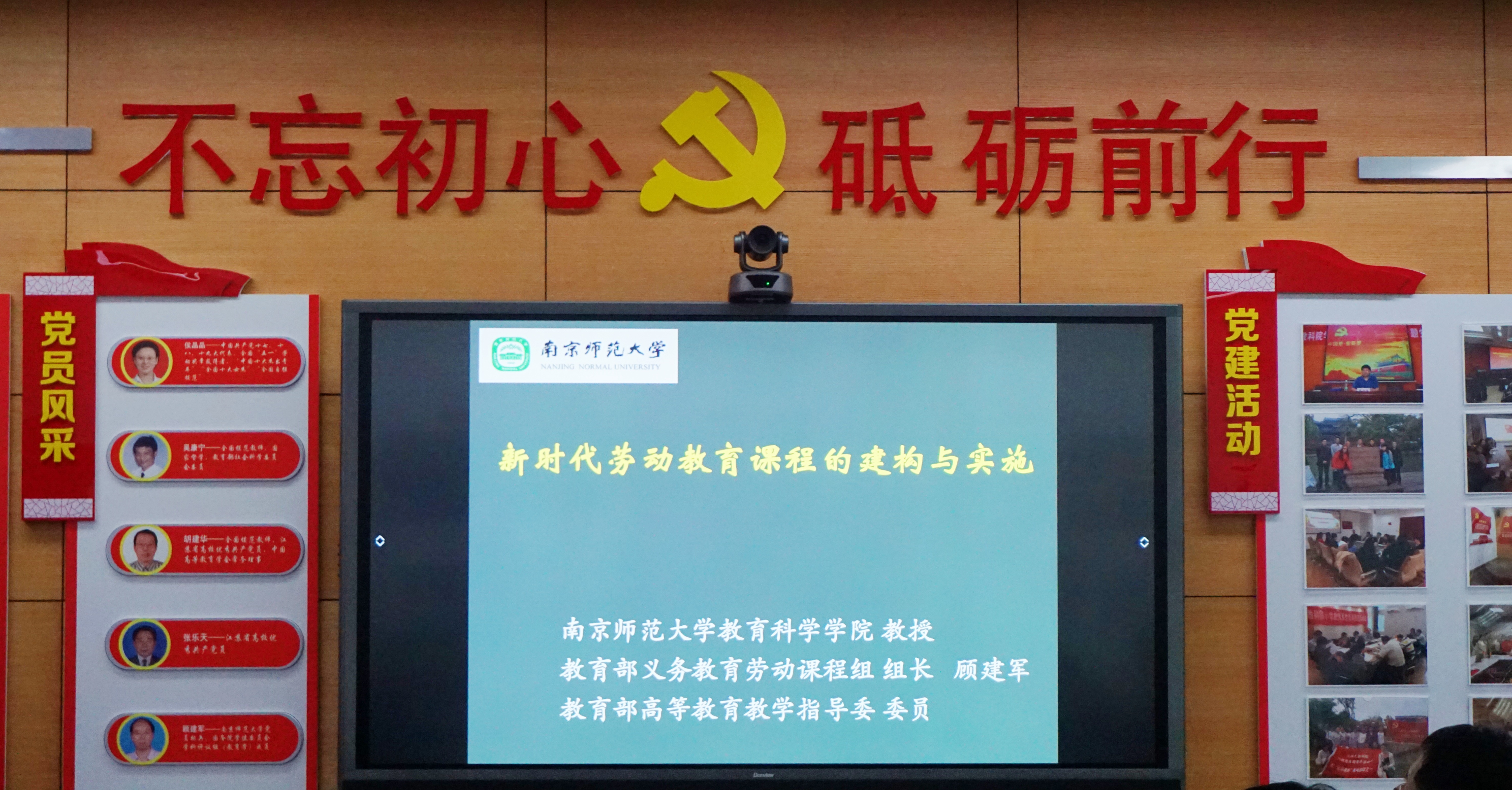顾建军为参会代表作劳动教育主题讲座。他深入浅出、追本溯源地为大家讲述了劳动教育的历史变迁与发展历程,深刻剖析了劳动教育的概念内涵,强调了在新时代实现伟大复兴中国梦的奋进道路上,做好劳动教育的重要意义,并阐述了“3+1”的劳动教育实施路径,以及现阶段在劳动教育体系建设中面临的问题与应注意的关键点等内容。