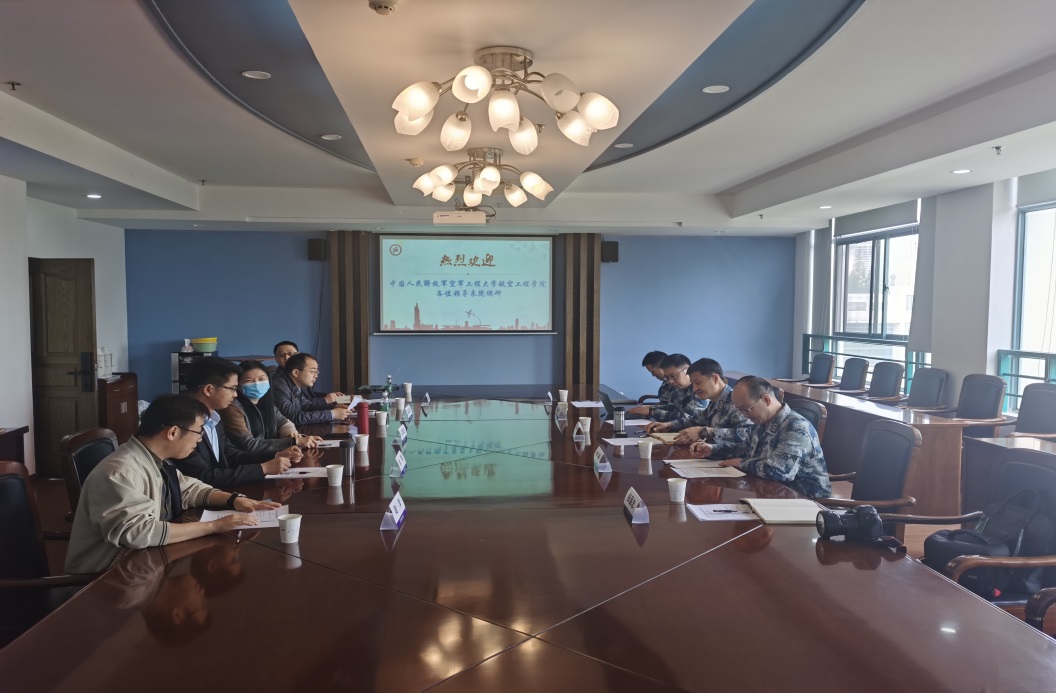 2021年4月26日,空军工程大学航空工程公司李宏伟大校、李翔上校、程嗣怡大校、丁键、张国忠一行赴公司调研,航空公司党委书记冯绍红,党委副书记佘明,公司副经理钱征华、陆洋,经理助理史勇杰,以及公司教学办主任胡挺一同参加调研交流,会议由陆洋副经理主持。