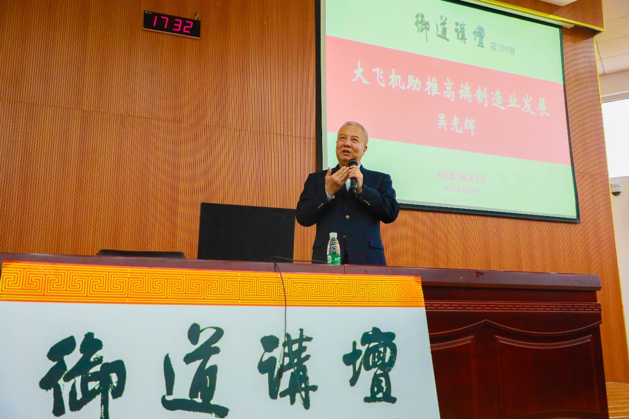 2021年4月28日,公司77级员工、中国工程院院士、C919大型客机总设计师吴光辉在将军路校区为师生作了一场题为《大飞机助推高端制造业发展》的专题讲座。讲座由bevictor伟德经理高存法主持。