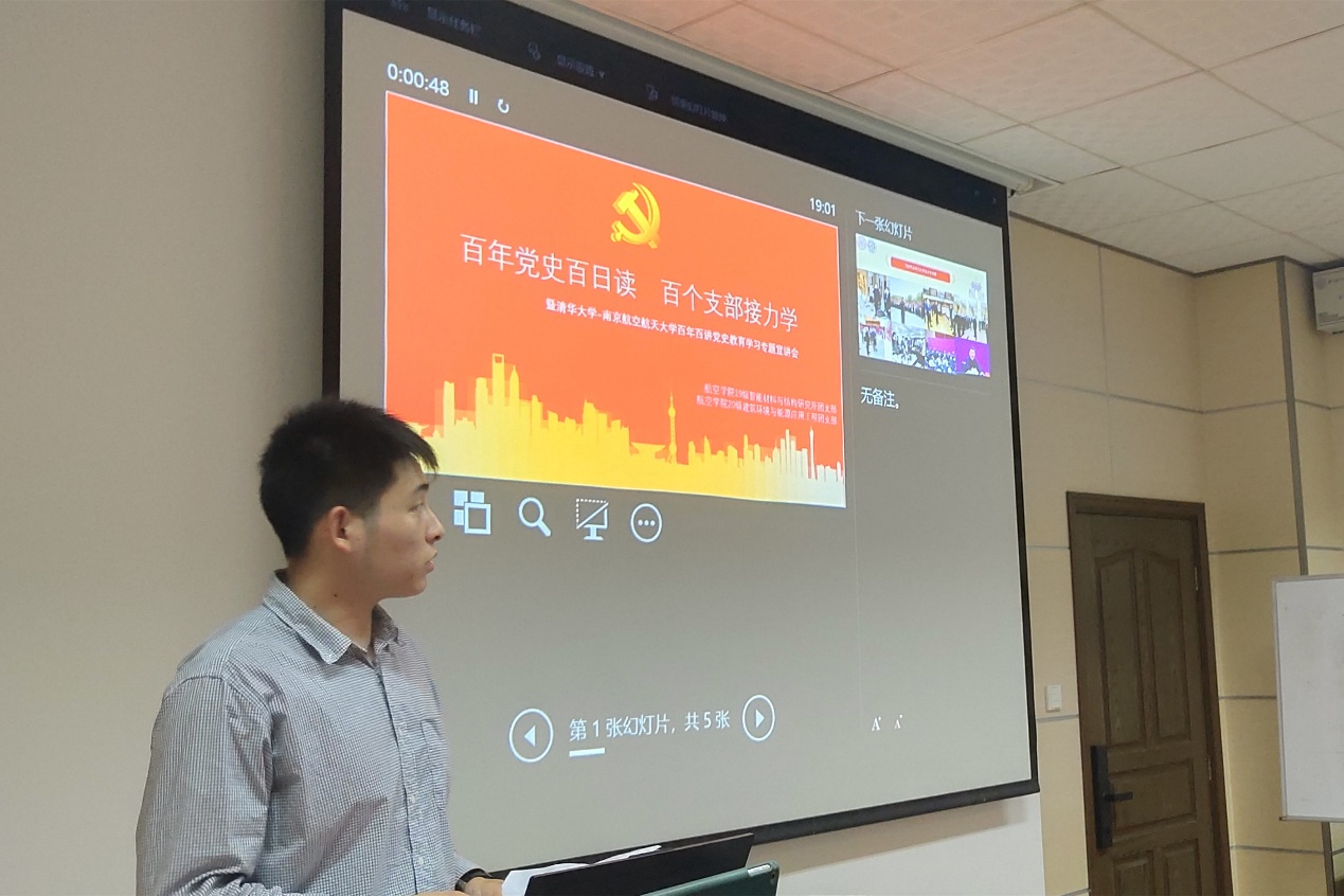 清华马院“百年百讲”宣讲团成员、博士於天禄为南航青年带来了一次深刻而有意义的团课。於天禄首先向大家就现今国际国内形势两个大环境做了介绍,接着回忆了习近平总书记的清华之行,并针对总书记考察清华大学的重要讲话精神做了提炼总结,最后结合《中国青年报》刊发的《共青团中央、全国青联、全国学联召开座谈会深入学习贯彻习近平总书记视察清华大学重要讲话精神》一文,就更好地学习贯彻习近平总书记考察清华大学重要讲话精神向支部团员发起号召,鼓励大家在新时代的具体实践中践行青年使命与担当。