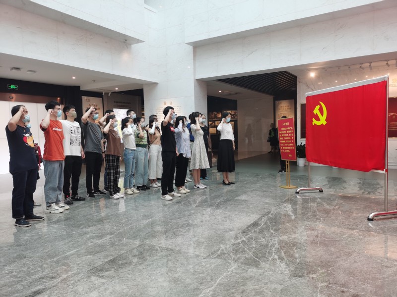 两支部全体党员瞻仰周恩来总理铜像并敬献花篮,随后在国共南京谈判史料陈列厅的汉白玉浮雕前,在公司党委书记冯绍红的带领下,面对着党旗,两支部的三名新党员进行入党宣誓,全体党员重温入党誓词。