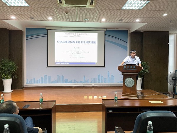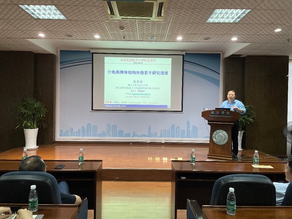 应公司bevictor伟德副经理、机械结构力学及控制国家重点实验室钱征华教授的邀请,浙江大学航空航天公司常务副经理陈伟球教授于2021年6月2日访问公司,并做了题为“介电高弹体结构失稳若干研究进展”的学术报告。报告介绍了陈伟球教授课题组近期开展的拉伸状态下介电薄膜失稳现象的理论建模和电压调控下弹性-介电双层结构的自弯曲变形及其稳定性研究,阐述了介电高弹体中特有的欧拉失稳、力电耦合失稳、拉伸断裂、电击穿等现象,以及在特定条件下的转换关系。报告内容丰富、精彩生动,对公司相关科研工作具有借鉴作用。同时,教授还结合自己多年的研究经历,与现场听众分享了研究心得和体会。钱征华主持了报告会,公司师生90余人参加。