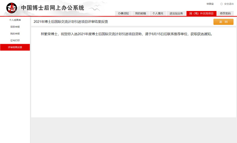 近日,全国博士后管委会办公室、中国博士后科学基金会公布了博士后国(境)外交流项目资助工作,其中包括博士后国际交流计划引进项目的评审结果。公司博士后林繁荣作为公司首位留学回国人员的博士后入选“2021年度博士后国际交流计划引进项目”资助。