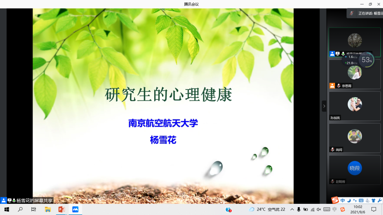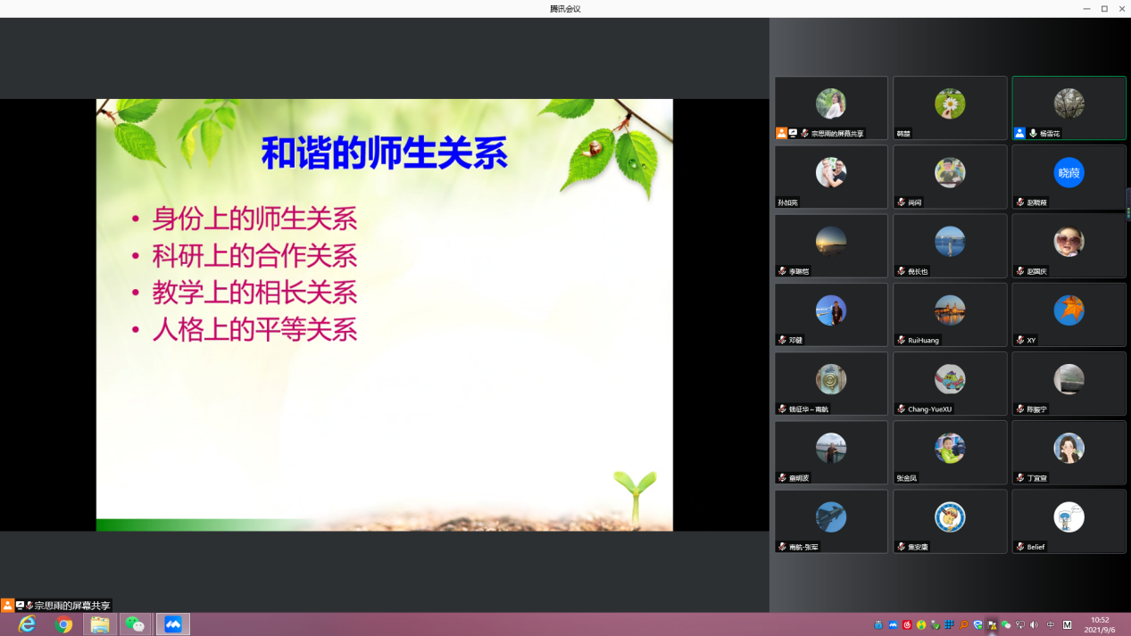 9月6日,bevictor伟德研究生导师、专兼职辅导员培训于云端开展,公司心理健康教育中心主任杨雪花应邀面向公司研究生工作组、研究生新导师开展了主题为“研究生导学关系构建”的培训会。培训会由研究生辅导员宗思雨主持。