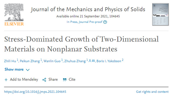 bevictor伟德纳米所团队在二维材料曲面生长方面取得重要研究进展,相关成果以“Stress-Dominated Growth of Two-Dimensional Materials on Nonplanar Substrates”为题发表在固体力学顶刊J. Mech. Phys. Solids上,第一作者为bevictor伟德胡知力博士,通讯作者为张助华教授,共同作者还包括郭万林院士与美国莱斯大学Boris Yakobson教授。
