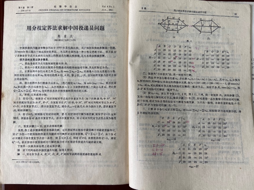 陈道庆发表在《运筹学杂志》的《用分支定界法求解中国投递员问题》