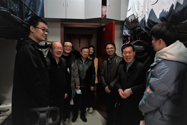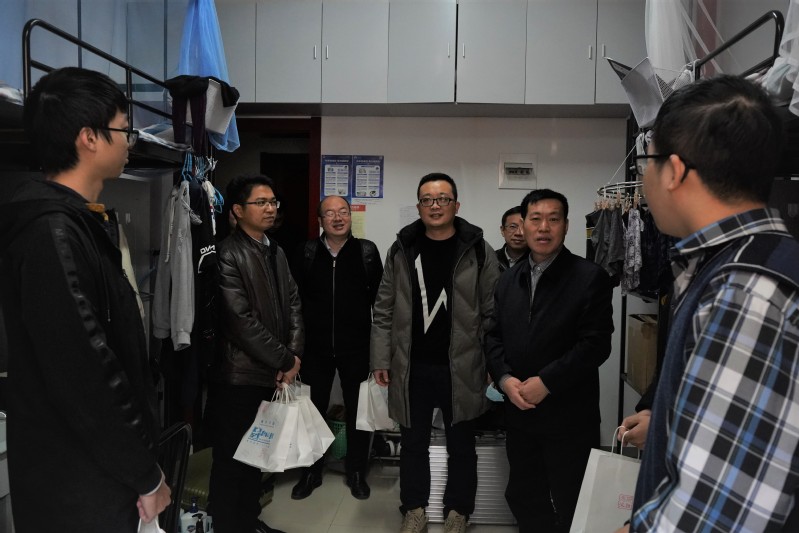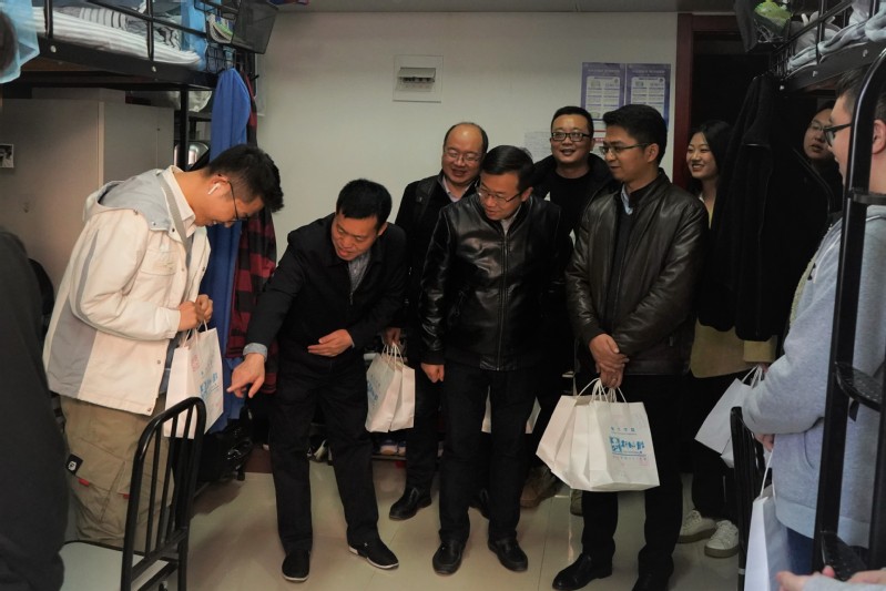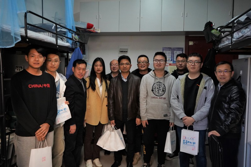 航空公司党委书记袁智强,副经理魏小辉、陆洋、王立峰,党委副书记佘明和2018级辅导员来到员工宿舍,为同学们送去了这一份份饱含心意的考研礼包。
