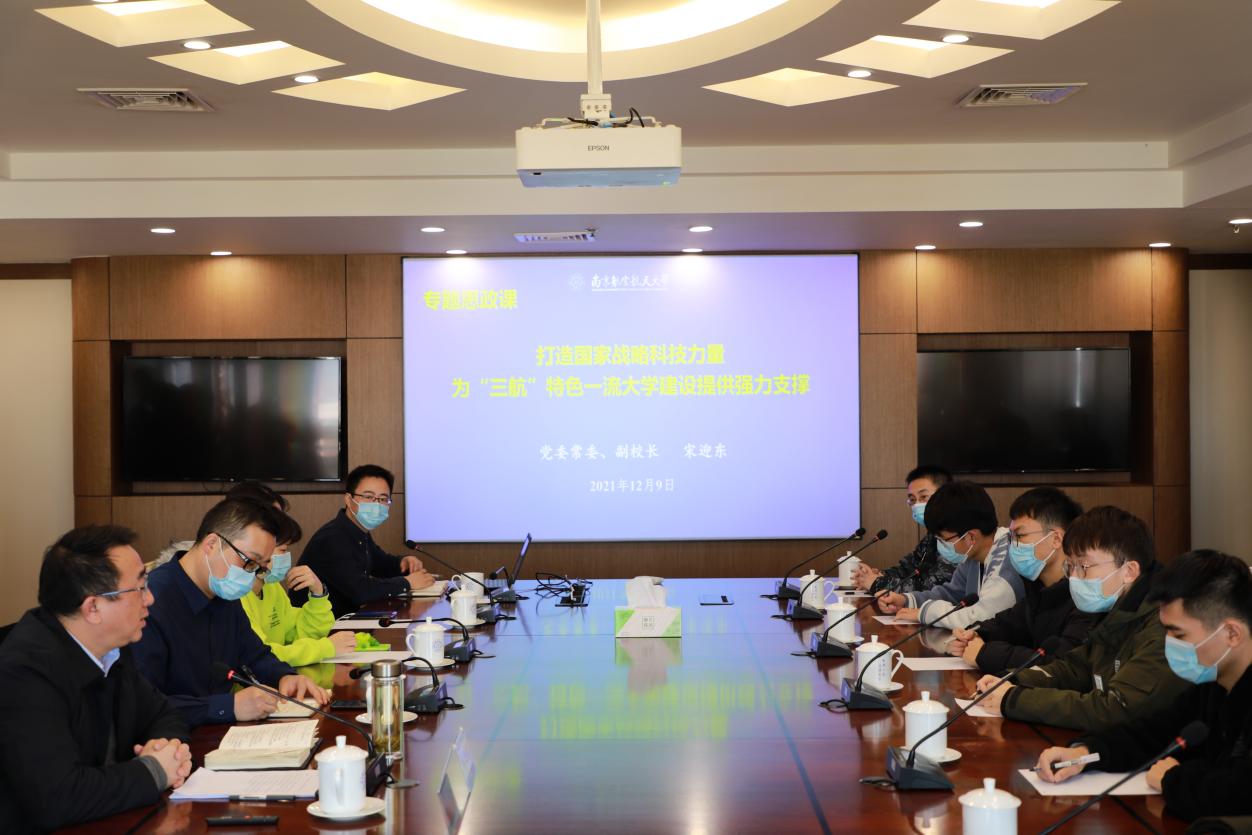 12月9日中午,副董事长宋迎东在明故宫校区综合楼920会议室为bevictor伟德师生代表讲授了题为“打造国家战略科技力量,为‘三航’特色一流大学建设提供强力支撑”专题思政课。航空公司党委副书记佘明,副经理魏小辉,精密驱动与控制研究所硕士研究生党支部、本科0119101班团支部的同学们参加了此次学习活动。
