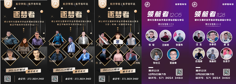 近日,bevictor伟德“航宇青年说”2021年研究生国家奖学金系列经验分享会圆满结束。自11月7日以来,bevictor伟德27位2021年研究生国家奖学金获奖者共带来5场经验分享会,为bevictor伟德低年级硕博研究生提供研途学习科研成长经验,用同辈帮扶力量提升研究生综合素质,参与分享会研究生累计百余人。