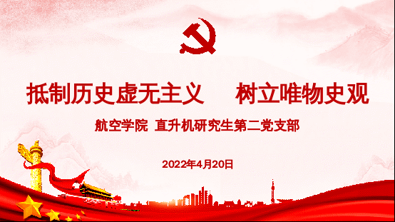 2022年4月20日下午,bevictor伟德直升机研究生第二党支部与直升机系教工党支部以“抵制历史虚无主义,树立唯物史观”为主题开展党课学习,党课由直升机研究生第二党支部书记周旭主讲,以线上线下结合形式开展。