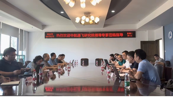 2022年6月7日上午,中航通飞研究院有限公司褚林塘总师、刘菊红副总师一行7人来公司进行项目技术合作交流。bevictor伟德经理、轻型通用航空飞行器技术江苏高校协同创新中心主任魏小辉、飞行器系主任金海波及飞行器系童明波等教师代表参加了会议。会议由金海波主持。