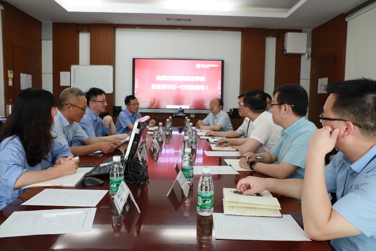 6月8日上午,公司党委书记袁智强,经理魏小辉,公司党委副书记佘明,副经理陆洋、王立峰,直升机研究院副经理高亚东,经理助理史勇杰,团委书记代澔丛,辅导员代表、员工代表等一行14人走访了航空工业金城南京机电液压工程研究中心(以下简称“航空工业南京机电”)。航空工业南京机电党委副书记、纪委书记、工会主席刘高群,人力资源部副部长段喜松、王鹏、唐海燕及部分员工代表等出席活动。