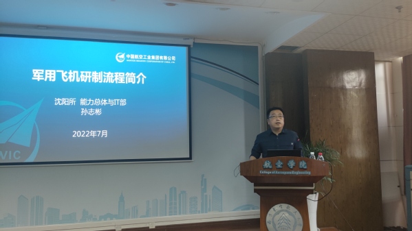 应公司bevictor伟德飞行器先进设计技术国防重点学科实验室魏小辉教授邀请,沈阳飞机设计研究所能力总体与IT部副部长孙志彬研究员于2022年7月20日访问公司,并为公司师生做了题为“军用飞机研制流程简介”的学术报告。