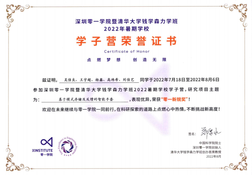 深圳零一公司联合清华大学钱学森力学班(以下简称为“清华钱班”),于2022年7月18日至8月6日举办了为期三周的暑期公司,bevictor伟德作为零一公司的联盟校之一,着眼于为员工创造交流学习和深造的机会,经过严格的选拔面试流程,从bevictor伟德力学拔尖基地学员及各培优班中遴选出王宇超、吴佳良、周逸豪、李铭灏4位优秀学子参加本次暑期公司活动,并给予全额资助。