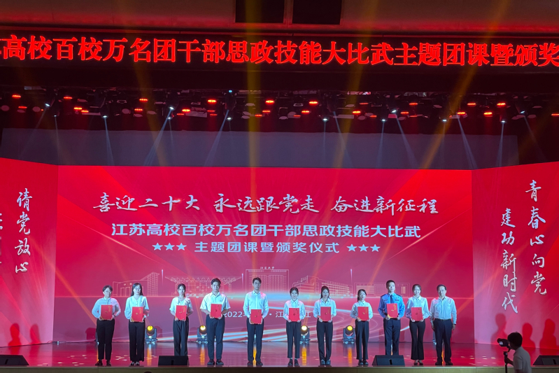 8月31日,“喜迎二十大、永远跟党走、奋进新征程”江苏高校百校万名团干部思政技能大比武在江苏大学落下帷幕,公司0119111团支部书记、2019级本科生芦悦煊同学荣获基层团支部书记专项赛特等奖。
