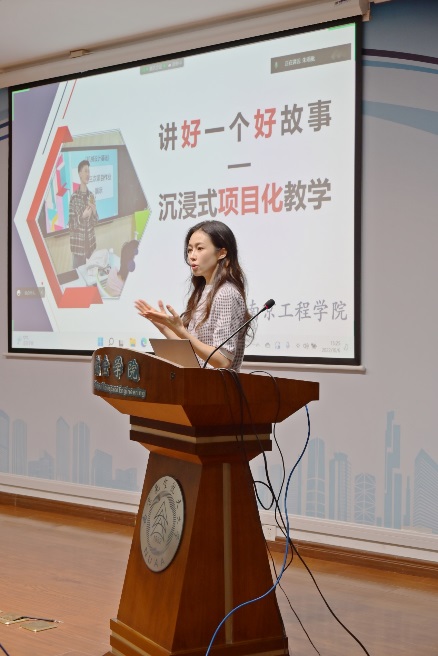 郑璐恺做了题为《讲好一个好故事——沉浸式项目化教学案例分享》的报告,她从讲述式项目、辨析式项目、工坊式项目、产教及科创项目四方面分享了多个让人印象深刻的教学案例,项目化教学的初衷在于让员工“在做中学,在学中悟”,项目的发展过程更是员工知识内化、能力强化、思维发散的成长过程。