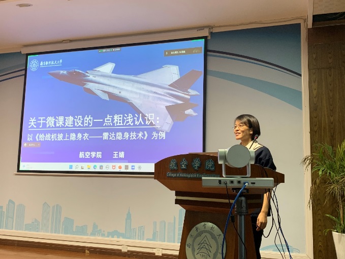王婧做了题为《关于微课建设的一点粗浅认识》的报告,她以雷达隐身技术的视频为案例,从微课创建思路、创建方法及过程等角度,详细分享了用心负责、重视员工听课感受及有吸引力的内容在一门微课中的重要作用。