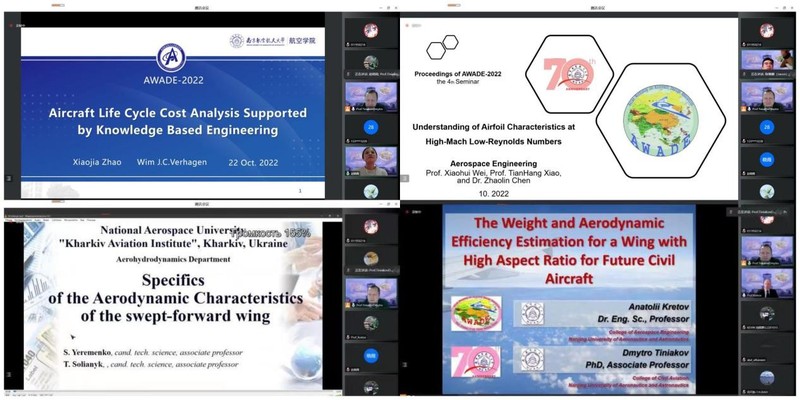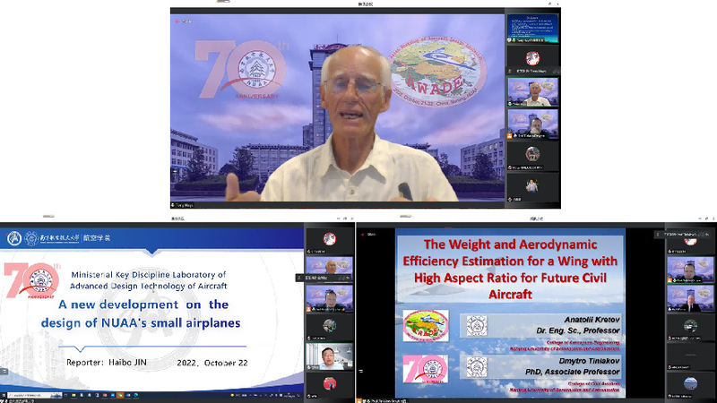 本次会议共有4个主题报告和12个分会报告。4个主题报告分别是:来自美国加州大学(长滩分校)集团的Tony Hays教授做了题为《氢能飞行器设计》的报告,南航的金海波老师做了题为《南航型飞机设计的新进展》的报告,外籍教师Kretov Anatolii和Tiniakov Dymtro联合做了《未来民机大展弦比机翼重量和气动效率的估算》的报告,来自德国汉堡应用技术大学的Dieter Scholz教授《面向喷气/螺旋桨民机优化的飞机设计工具与数据》。分会报告内容涵盖了航天用降落伞技术,基于知识工程的飞行器全寿命成本分析,基于遗传算法的高马赫低雷诺数翼型优化,前掠翼气动特性,复合材料结构稳定性分析,航空工程专业的远程教育,基于诱导场强计算模型的飞机尾涡对比研究,干线飞机族方案设计建模方法,面向微型飞行器的盘环式径向扭转超声电机,复合材料模具3D打印和点阵结构转移模仿真等内容。共有近60名观众在线聆听报告并参与讨论。