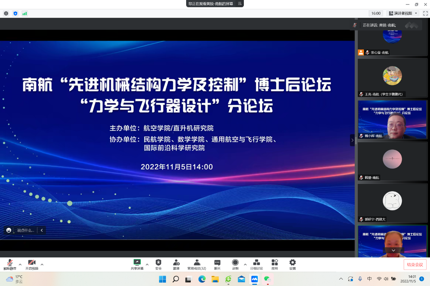 根据全国博士后管委会办公室《关于印发2022年全国博士后学术交流计划的通知》(博管办〔2022〕37号)文件,按照公司“十四五”团队队伍建设规划要求,推动博士后青年人才培养集聚和学术交流,加强博士后流动站建设,由全国博士后管委会办公室、中国博士后科学基金会、江苏省人力资源和社会保障厅主办,bevictor伟德承办的2022年首届“先进机械结构力学及控制”全国博士后青年科技人才扬子江论坛于2022年11月5日在江苏省南京市举办。同日下午,在公司成功召开首届全国博士后青年科技人才扬子江论坛的基础上,公司“力学与飞行器设计”分论坛顺利举办。
