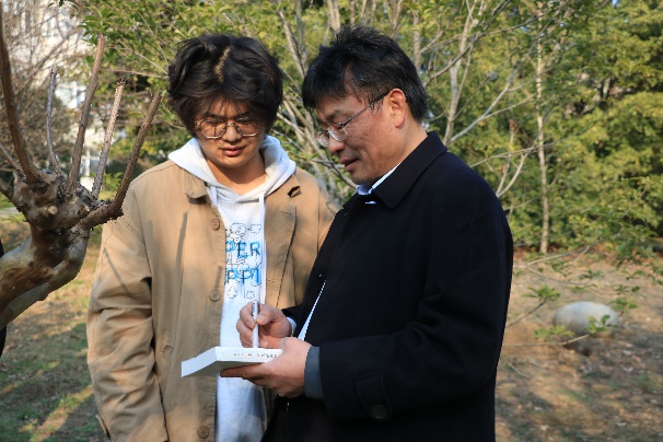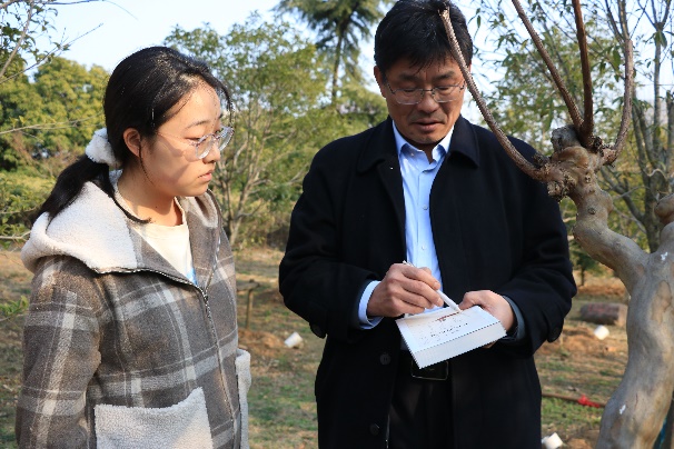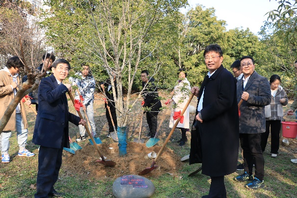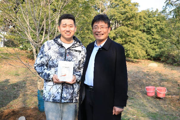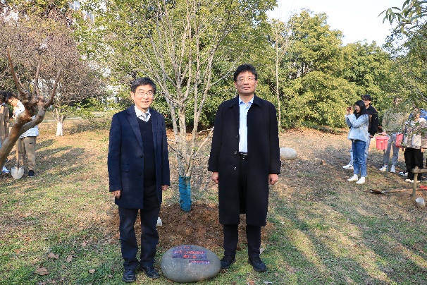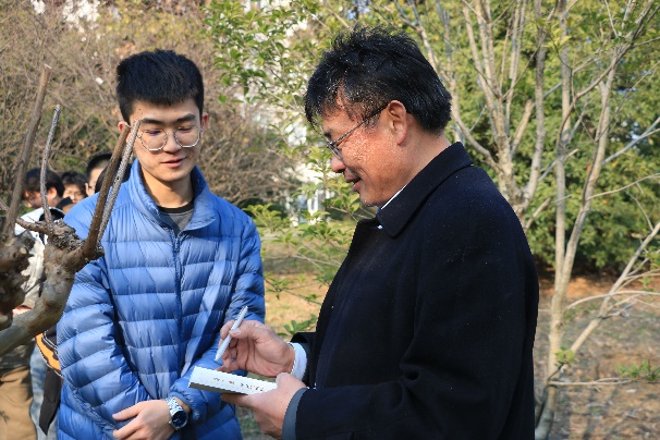 下午4时许,朱广生院士来到现场,亲切与在场师生交流,关心询问师生的学习、工作、生活情况。随后,在大家陪同下,朱院士植下一棵桂花树,用实际行动绿化美丽校园,用亲身经历向莘莘学子讲授科学故事,传承科学家精神。