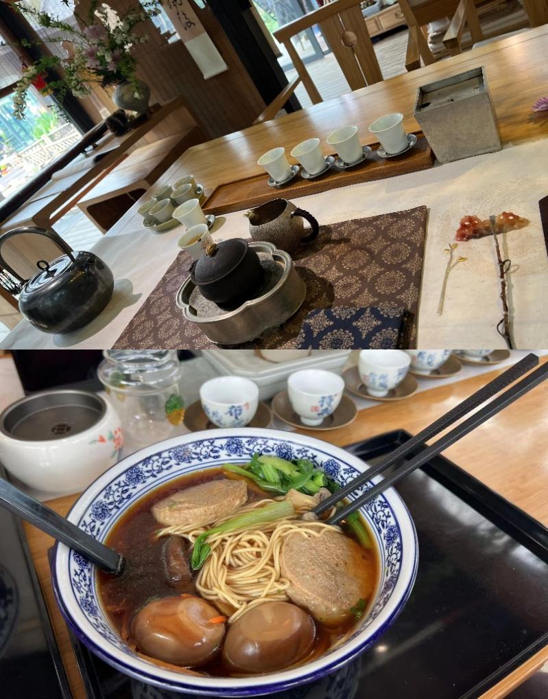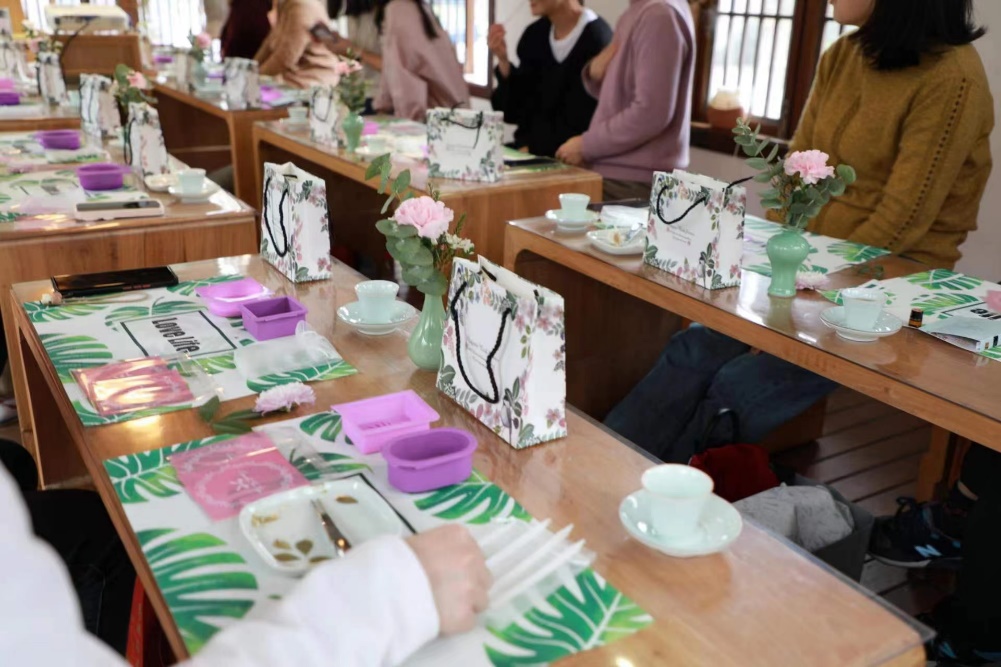 手作课程结束后,大家纷纷开始体验附近的茶室茶文化,品尝一碗素面、分享一杯中国茶的生活美学,领略美之道,生活之道,安静地享受这一日山中安宁悠闲的时光。这一天,每个人都在学习如何爱自己、爱生活、爱工作,通过对自己的关爱把更多的爱带给周边的人。