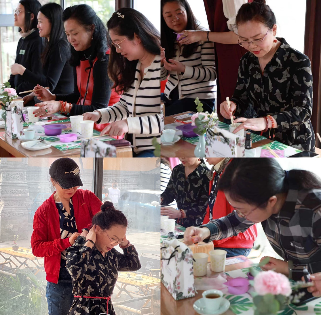 活动开始,精油手作指导老师带学员们认识了精油和芳香疗法,带领大家现场体验了疏解压力、调节情绪的精油冥想和精油按摩。