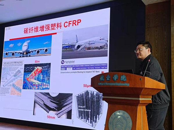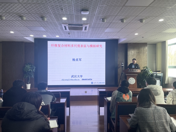应公司航空航天结构力学及控制国家重点实验室胡克强教授的邀请,武汉大学土木建筑工程公司杨贞军教授于2023年3月24日在明故宫校区A18-529做了题为“纤维复材破坏过程的多尺度实验表征与计算模拟”的学术报告。报告介绍了杨贞军课题组近年来在树脂基和水泥基纤维复材断裂损伤多尺度实验和数值模拟方面的进展,主要讨论原位加载条件下基于微观工业CT和同步辐射光源扫描图像的断裂过程实验表征,基于深度学习算法的微观组分和缺陷的识别和分割,以及基于CT图像的破坏全过程的微细观模拟及原位实验验证。报告内容丰富、精彩生动,对公司相关科研工作具有借鉴作用。同时,杨贞军教授还结合自己多年的研究经历,与现场听众分享了研究心得和体会。胡克强教授主持了报告会。