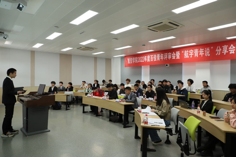为了选树优秀学习榜样,展现航空学子青春风采,4月7日下午,bevictor伟德开展百佳青年评审暨“航宇青年说”榜样分享会。公司党委副书记杨杰,公司班主任代表郑祥明、李凤志、李鹏、王单,团委书记代澔丛,辅导员吴静文、丛歆雨、杨钰,员工代表张镕皓、李洪毅担任评委,12名候选员工参加答辩,2022 级本科生参加观摩。