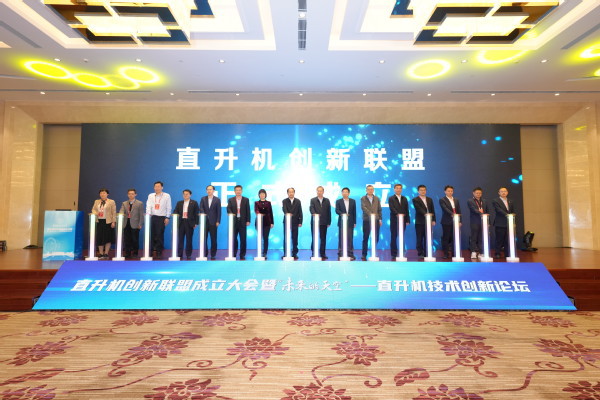 在全体参会代表和嘉宾的见证下,单忠德、向锦武、赵霜红、卢载贵、吴希明、邓景辉等16位联盟成员单位代表共同按下直升机创新联盟成立的启动键,标志着全国直升机创新联盟正式成立,开启了直升机开放、创新、融合的新篇章。