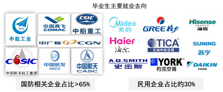就业:员工主要分布在航空、航天、民航、机械、建筑、化工和能源等领域从事飞行器环境与生命保障、航天器热控技术、空调与制冷技术、热能与动力工程、电子设备热设计等的技术研发及管理工作,近三年就业率均达100%。