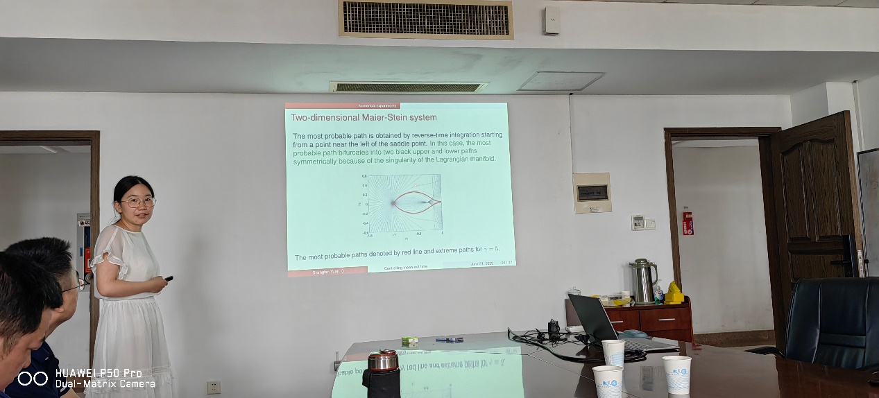 2023年6月21日,应公司航空航天结构力学与控制全国重点实验室刘先斌教授和朱金杰特聘副研究员的邀请,德国奥格斯堡大学助理研究员袁胜兰博士在明故宫校区18号楼705会议室为非线性随机动力学课题组的老师、博士后和博士生们作了题为:“基于拟势和机器学习方法的随机动力系统平均离出时间的控制”的精彩学术报告。课题组冷小磊副教授、南京理工大学紫金博士后李扬博士、公司博士后张晓明博士、赵锋博士和全体博士生参加了报告会。