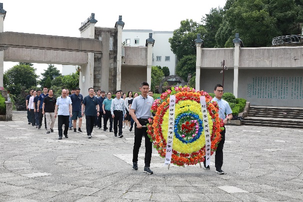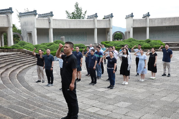 在皖南事变烈士陵园进行的党性教育培训动员仪式上,全体参训成员在邓小平同志亲笔题写的“皖南事变死难烈士永垂不朽”纪念碑前敬献花圈、鞠躬默哀,向烈士致以深切的思念,献上崇高敬意。党委副书记杨杰带领全体党员,面对鲜红的党旗,重温入党誓词。党委书记袁智强作动员讲话,希望老师们通过此次培训,铭记党的历史,传承红色基因,自觉把“学思想、强党性、重实践、建新功”落实到具体行动上。
