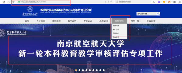 教发中心网站开通审核评估专栏,审核评估的相关材料后期都会发在专栏里,目前设置政策文件、通知公告、评估动态、他山之石四个模块。链接如下:http://cfd.nuaa.edu.cn/1530/list.htm。