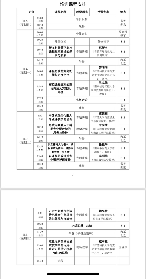 由省教育厅主办、江苏科技大学承办的 “ 教师课程思政能力提升培训班”定于2023年11月6-8日举办,欢迎教师云观摩。