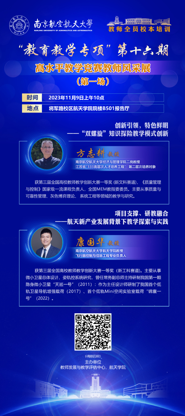 各位老师好,为配合各单位组织开展2023年高水平教师教学竞赛的赛前动员与培训工作,11月起将公司将组织高水平教学竞赛风采展系列活动,拟邀请全国青教赛、教创赛获奖教师为公司作经验分享交流。现将本周四首场活动公布如下: