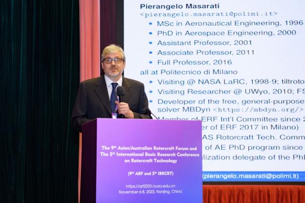 来自五个国家的意大利米兰理工大学Pierangelo Masarati教授、日本直升机学会主席/静冈科技大学Akira Sato教授、韩国全北国立大学Haeseong Cho教授、ARF执委/bevictor伟德夏品奇教授、英国格拉斯哥大学 George N. Barakos教授分别作了大会报告,就各国旋翼飞行器基础理论和技术研究的新进展、直升机设计及应用新技术、无人直升机技术与需求、直升机制造与材料、复合式直升机CFD研究进展及挑战等主题展开了广泛的交流与讨论。