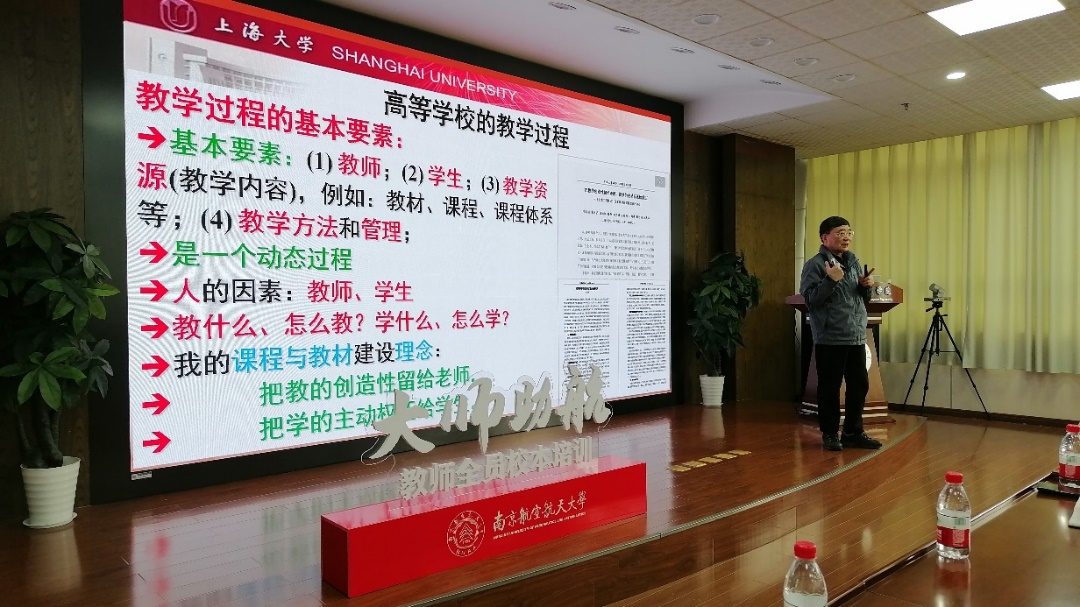 报告内容丰富、生动有趣。叶志明教授结合自身教书育人实践的体会,通过一系列生动的教学案例,深刻阐述了优秀教材建设要求、加强开展教材研究、研教用成就好教材三方面内容。叶志明教授将自己46年教育生涯中积累的丰富经验无私地传授给了在座的每一位教师。